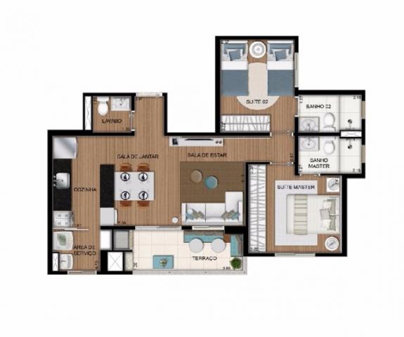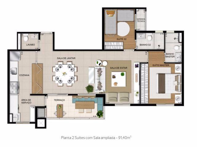 Torre Lume com apartamentos de 67,32 M², 2 suítes + lavabo e terraço com churrasqueira a carvão.